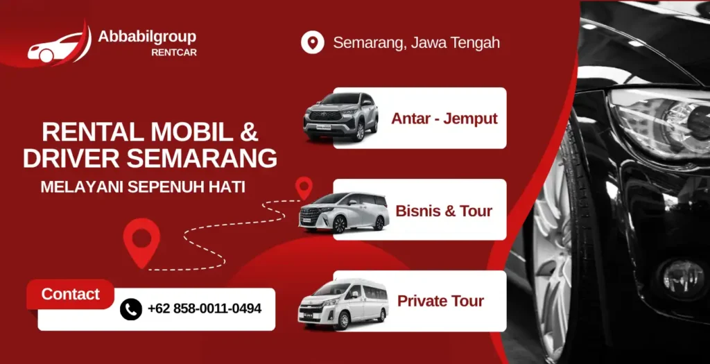 Kami menyediakan layanan jasa sewa mobil dengan sopir dengan beragam pilihan armada yang berkualitas untuk berbagai kebutuhan perjalanan, dari tour travel, antar jemput bandara, city tour Semarang, perjalanan dinas, wisata ziarah, mobil pengantin, dll.